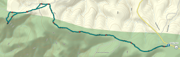The terrain had leveled out and we continued on the track watching for Stag Point, a knoll with a post on top, which was Reeder’s turn around point.