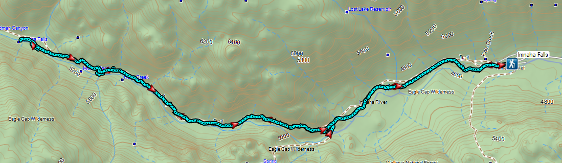 We took the South Fork Imnaha Trail #1816 following pointers for Blue Hole and Twin Lakes.
