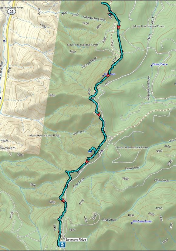 Reeder’s suggested hike for the Underhill Trail is an out-and-back to Fifteenmile Creek which for us came to 6.3-miles with approximately 1600′ of elevation gain.
