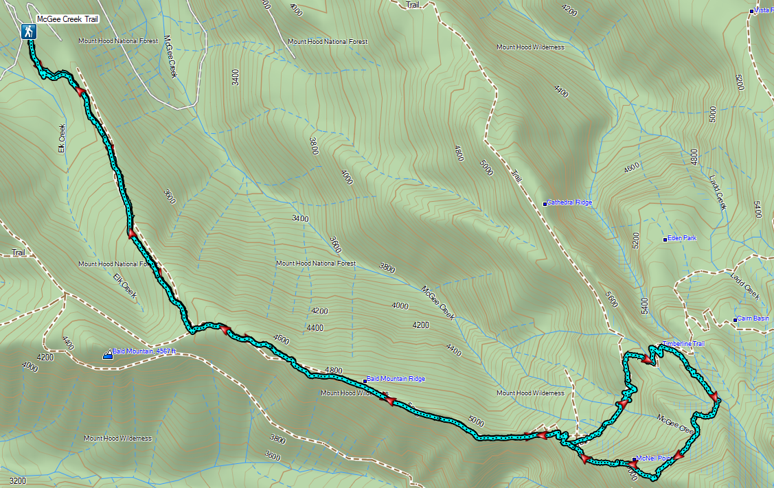 My pace slowed considerably as I made the mile climb out of the Zigzag Canyon. In hindsight I should have stopped for water from the river, but I didn’t and wound up having to ration what I had left in order to make it back to the lodge. (The Little Zigzag River had no visible water this late in summer.)