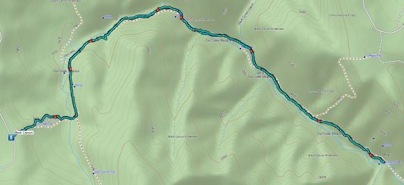 Owl Creek crossing approximately 1.5 miles from the junction.