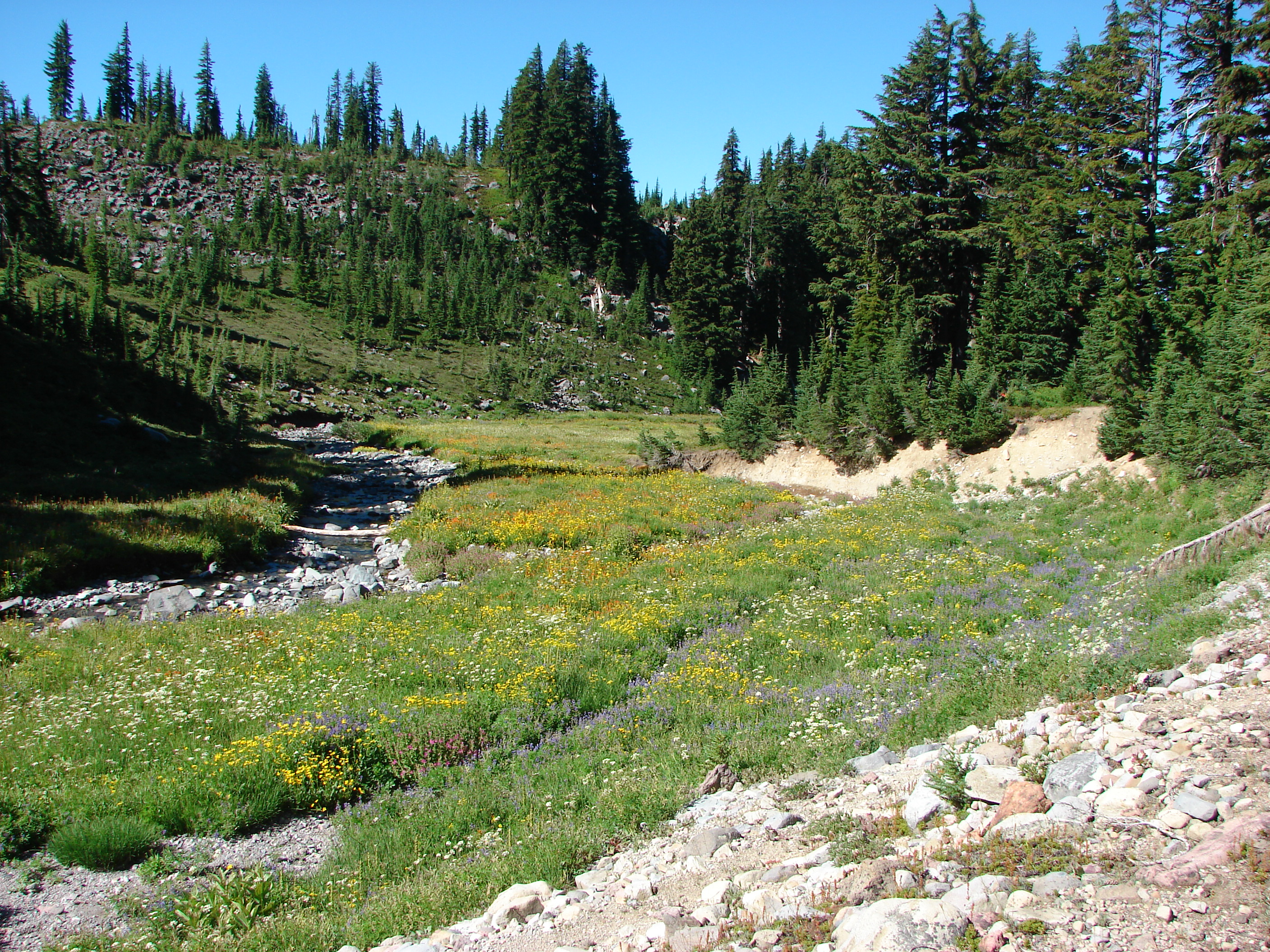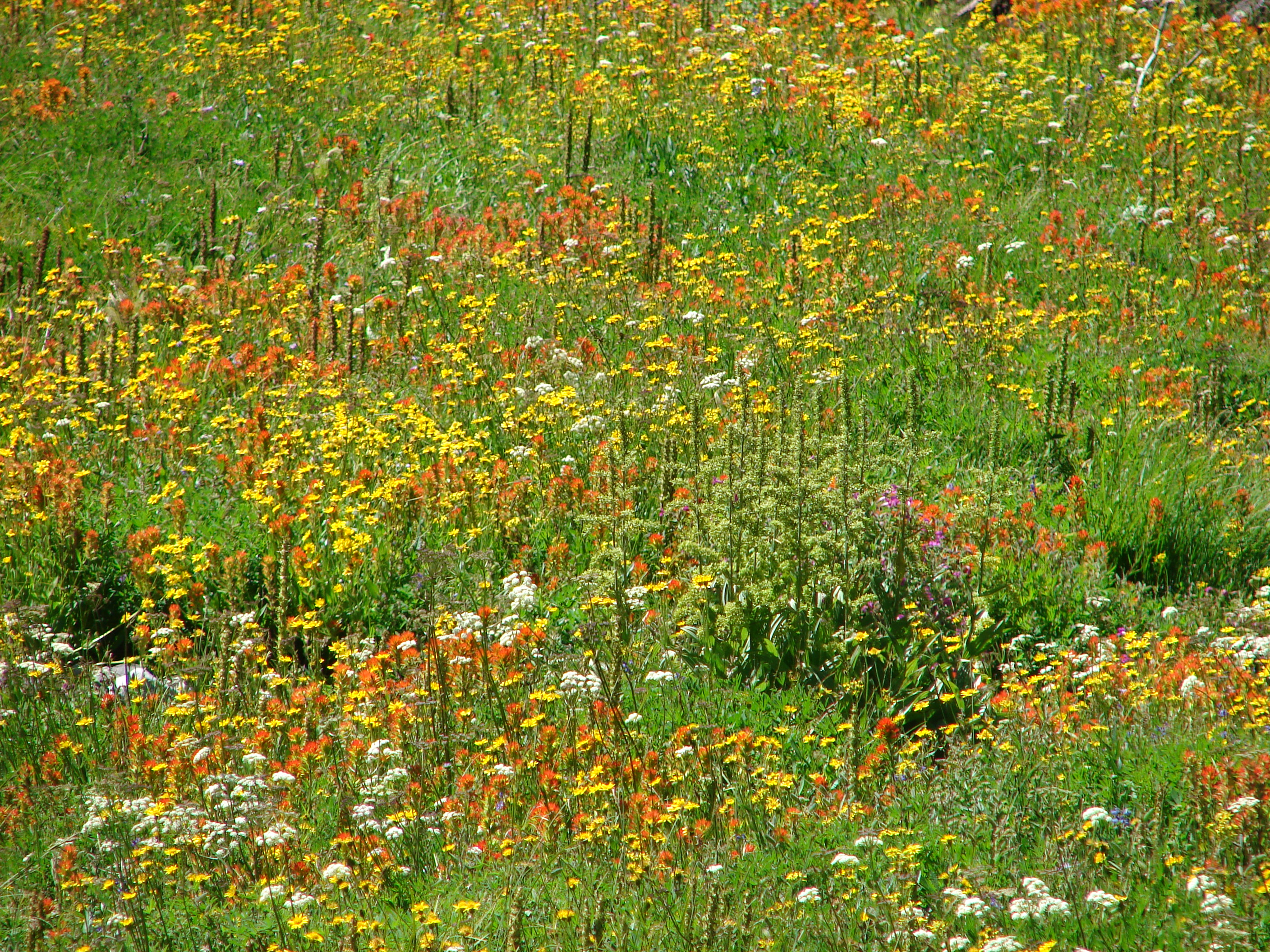 Field of paintbrush and mountain heather on the far side of Jefferson Park.