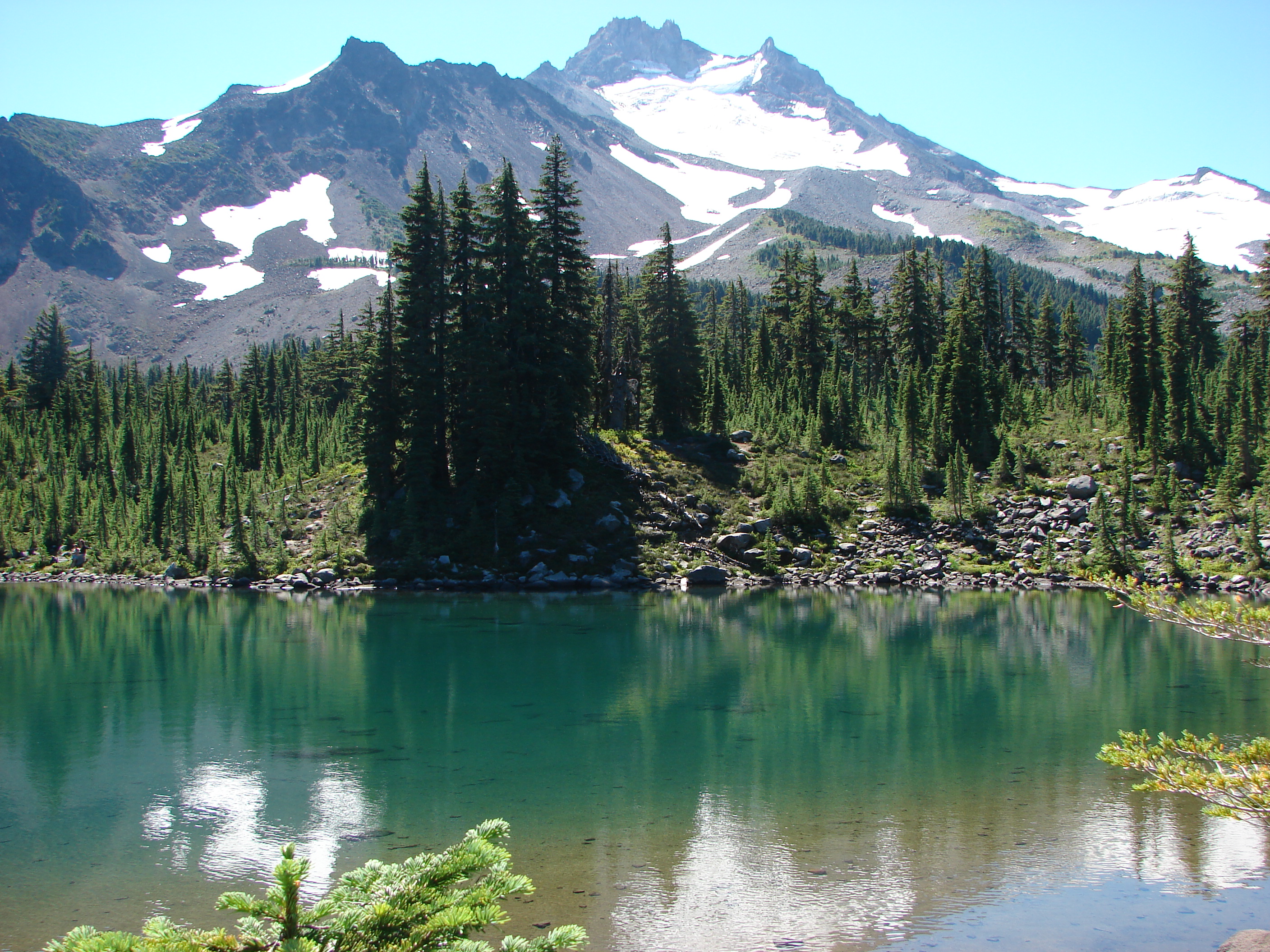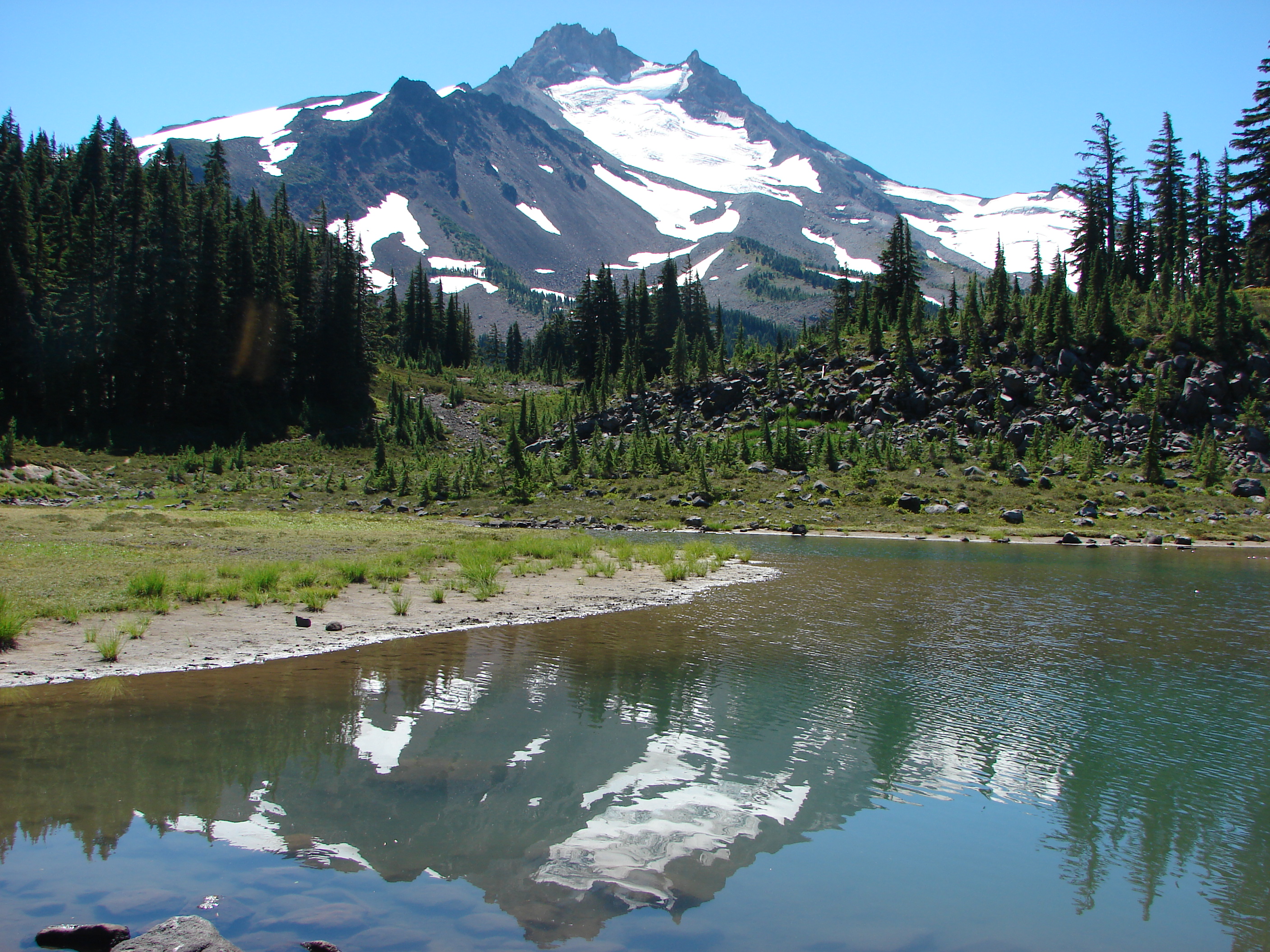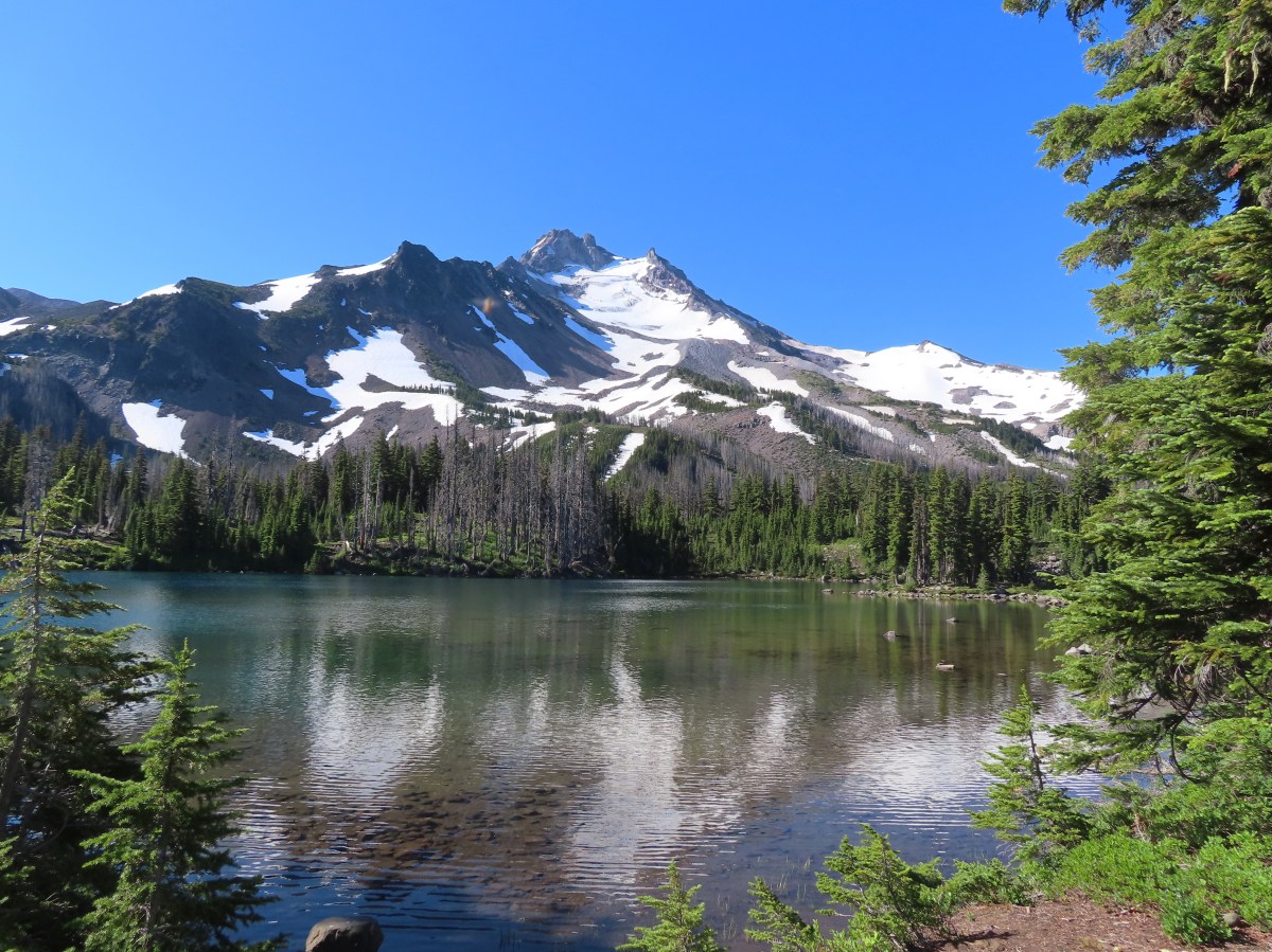 Mt. Jefferson from Scout Lake. One of the advantages of visiting earlier in the year was the location of the Sun overhead. Later in the Summer it has moved far enough south to make getting a good photo from this angle hard. The disadvantage of course was not being able to sit longer and enjoy the view sans mosquitos.