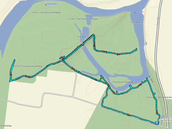 The delayed arrival of Spring weather has begun affecting the timing of the hikes that I’d planned for us this year. We had originally planned a wildflower hike for this weekend, but they are running at least two weeks behind so we turned to a pair of wildlife hikes instead. Our first stop was at the Snag Boat Bend unit of the William L. Finley National Wildlife Refuge.