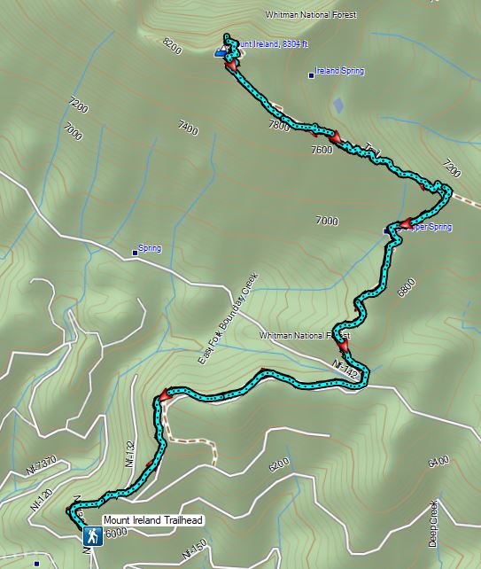 As we continue to work toward our goal of completing the 100 featured hikes (post) in each of the five areas covered by William L. Sullivan in his “100 Hikes” series we headed for Eastern Oregon for a week hoping to check off 6 more hikes from that area. The first hike on our list, Mt. Ireland, had become something of a white whale for us. We had tried to do this hike during a September 2017 to Sumpter, OR but an early round of snow forced us to change that plan (post). We tried again on the way home from backpacking the Elkhorn Crest (post) but a round of severe thunderstorms stymied that plan.