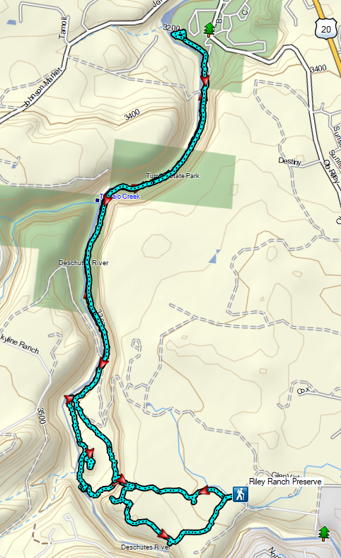 We planned to stay right on Juniper and Sage Flat Loops and take the Robin’s Run down to the Canyon Loop. For the Canyon Loop we decided to go left first to hike along the Deschutes River to the Tumalo State Park Day Use Area. On our way back we would complete the Canyon Loop and stay right on the Sage Flat and Juniper Loops.