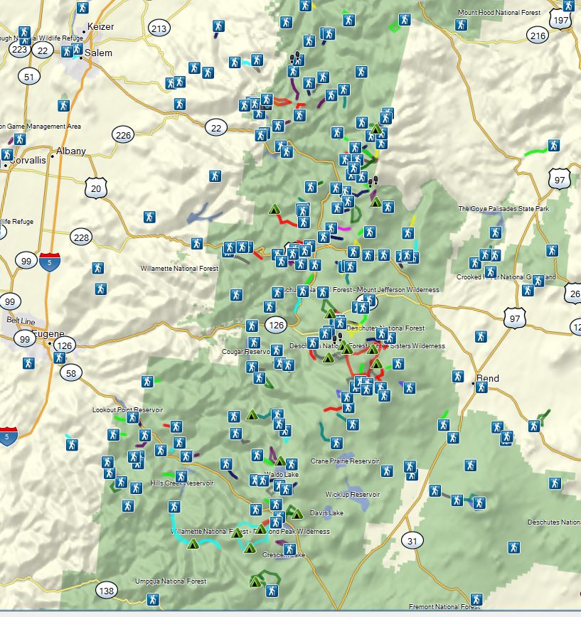 While it isn’t an official trail there is no camping allowed within 250′ of Golden Lake. In addition, throughout the Three Sisters Wilderness building, maintaining, attending, or using a fire, campfire, or stove fire above 5700′ is prohibited. Stoves must be fueled with liquid or compressed gas.